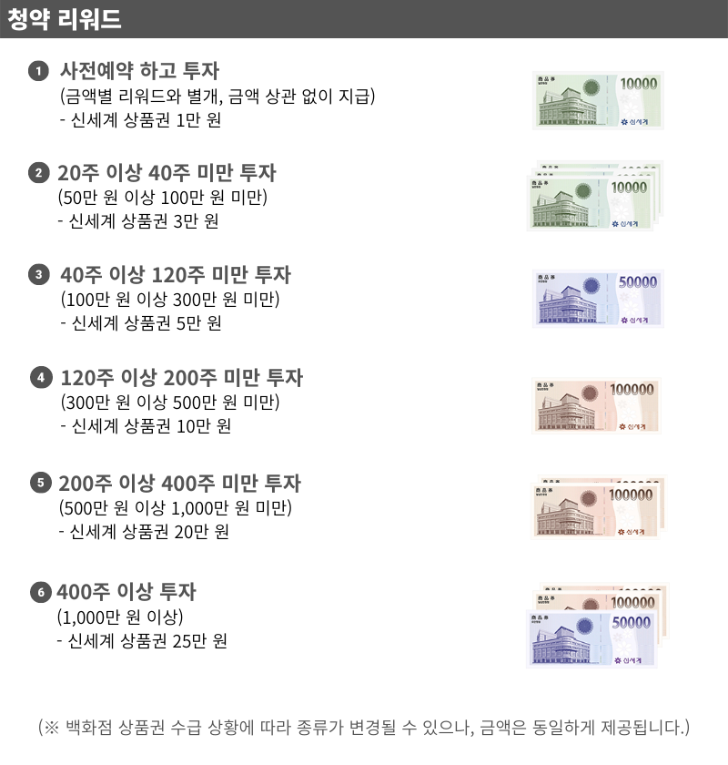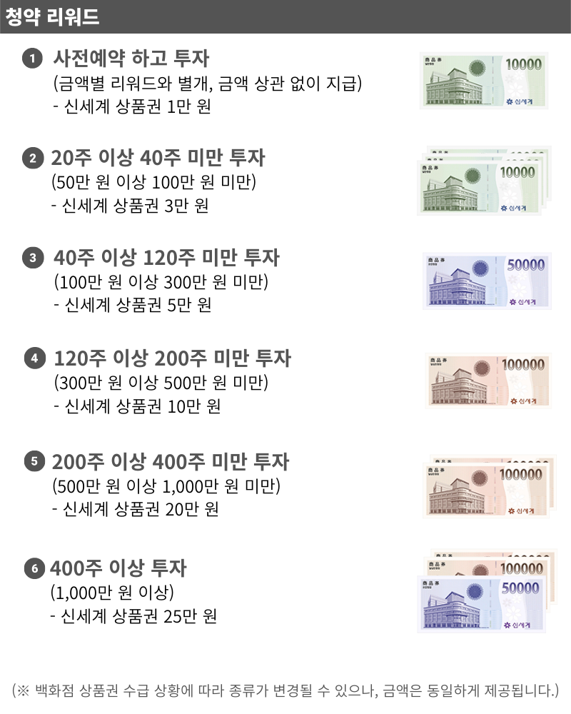 · 배정방법(목표금액 내 선착순 배정)에 따라 미배정 또는 일부 배정이 될 수 있으며, 배정되지 않은 청약금은 투자예치금 계좌로 환불(2022.03.16)됩니다.