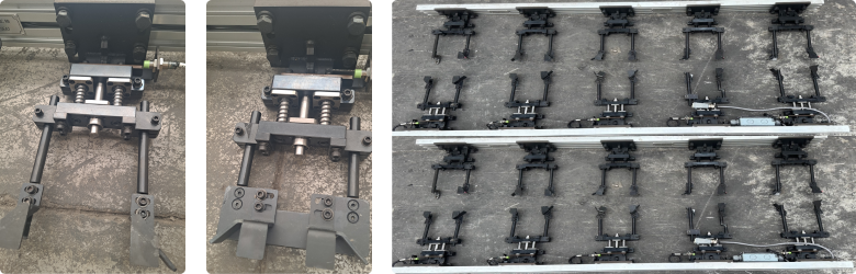 ❷ TRM-2는 양산성 개선 Type으로 이송을 위한 로봇 분리형 핑거입니다. TRM 전용 핑거 개발에 적용하고 있는 신소재는 고강도 알루미늄합금으로 기존 알루미늄합금보다 인장강도(Mpa)와 연실율(%)에서 월등히 앞서고, 열처리 과정이 불필요하며 생산 시간 및 비용이 현저히 짧습니다. 특히 열처리가 불필요하기 때문에 탄소배출량이 기존 알루미늄합금의 57%밖에 되지 않아 친환경 제조공정의 기반 역할을 하고 있습니다. TRM-2 모델은 현재 개발 진행 중으로 2026년부터 적용 시 특히 멕시코 법인의 부품 개발 차종 확대에 크게 기여할 것으로 예상됩니다.