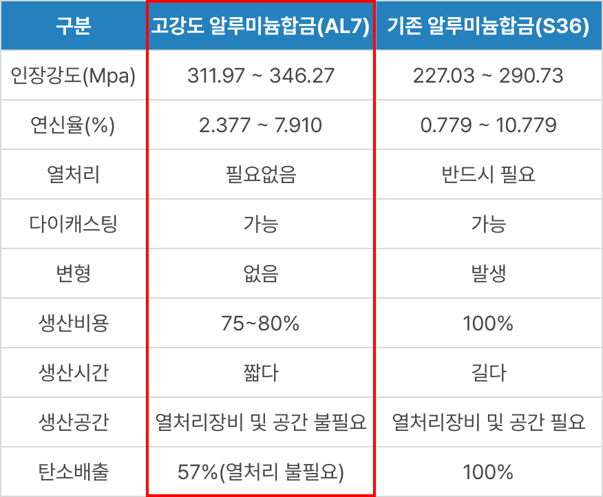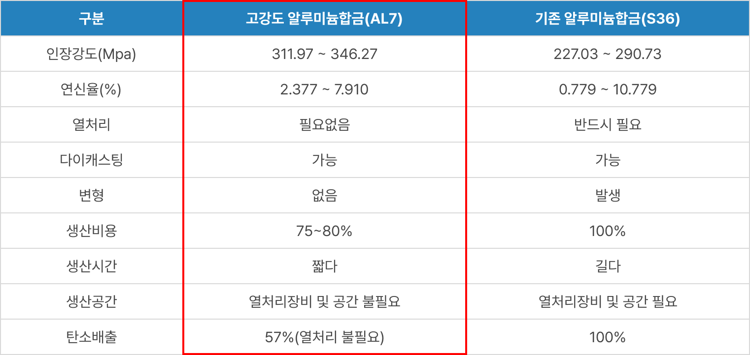 ❶ 고강도 알루미늄합금 적용