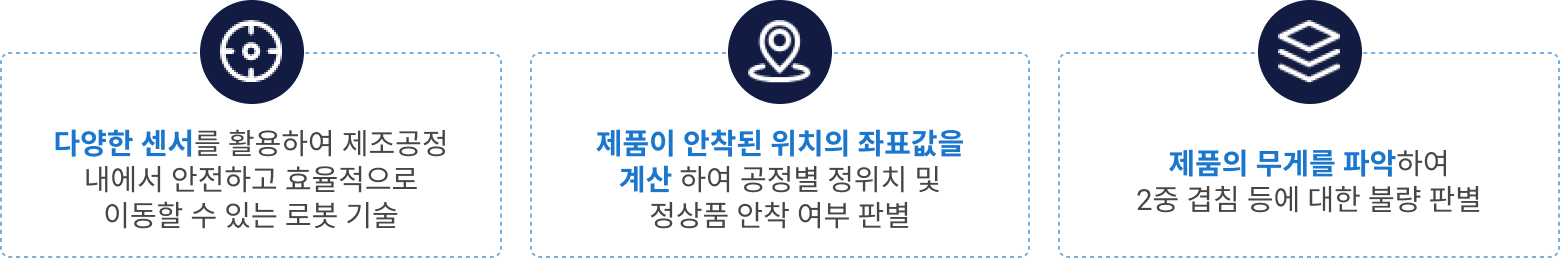 - AGV와 같은 물류로봇과 연동하여 공장 내 스마트 물류자동화 요소로 적용 가능