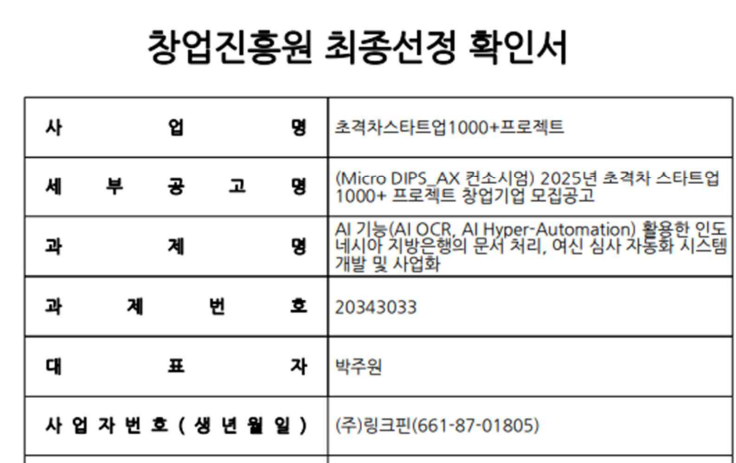 2번째 서비스를, 지난 8월에 한국 인공지능융합사업단의 초격차 1000+ DIPS AX컨소시움 사업자로 선정되어 정부지원 자금을 받아 추진하고 있습니다.