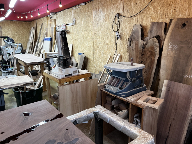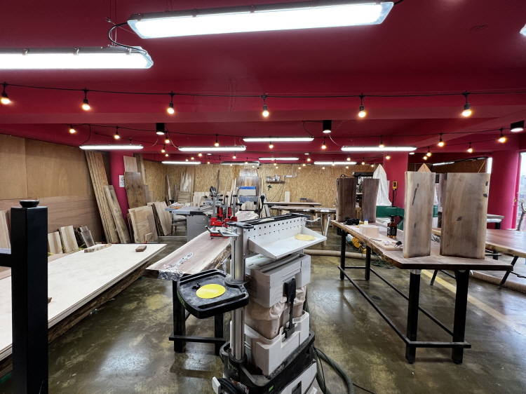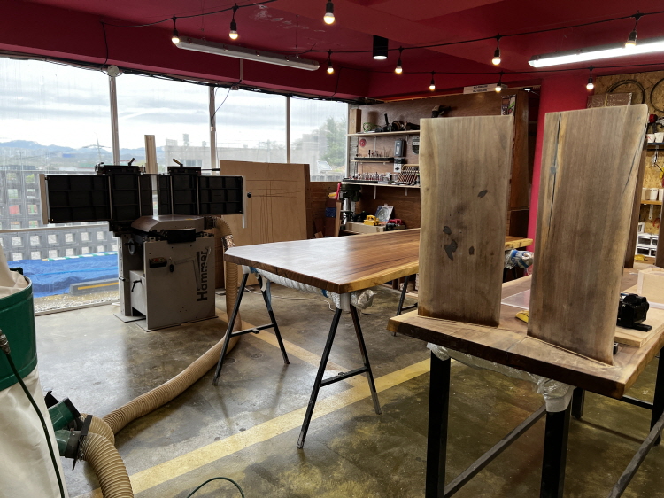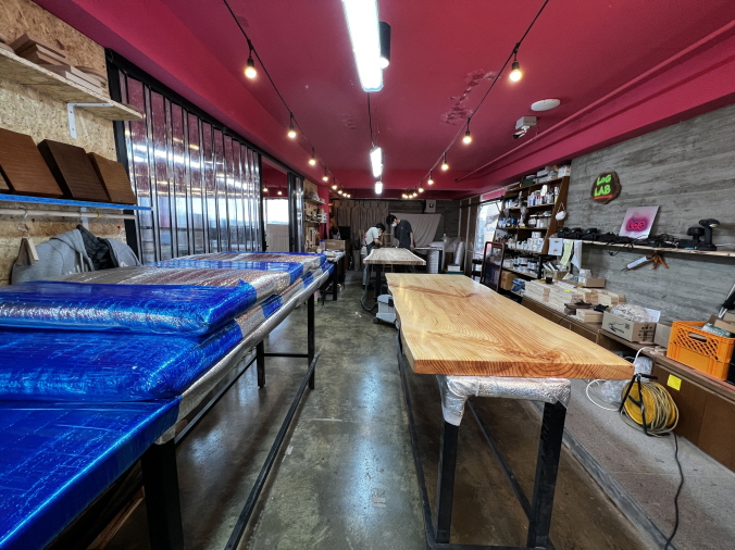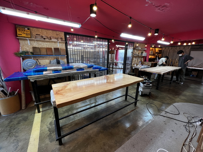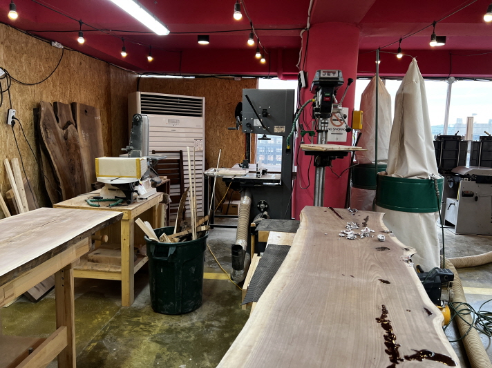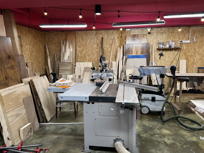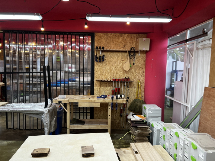 캠핑 컨셉의 차를 마시는 공간으로 제공되던 로그1층에 60평 정도 공간을 제작실로 만들었습니다