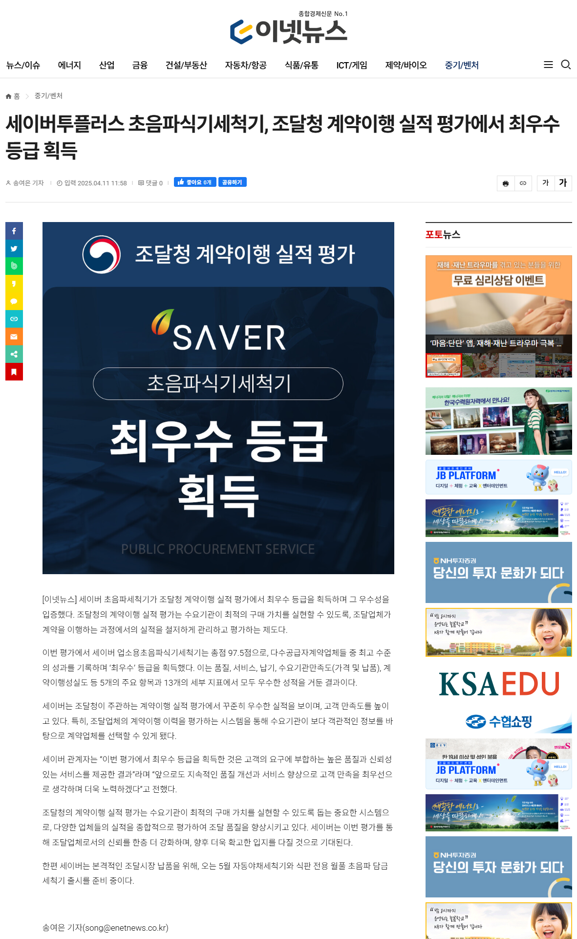 지난 4월 29일 인천지식재산센터에서 주관하는 “2024년 중소기업 IP(지식재산) 바로지원 사업에 선정되어 인천지식재산센터, 협력기관, 수혜기업(세이버) 3자간 협약 체결 완료 후 현재 세이버 오투나라 산소발생기 특허 제품에 관한 홍보 및 소개 영상을 제작 중에 있습니다.
