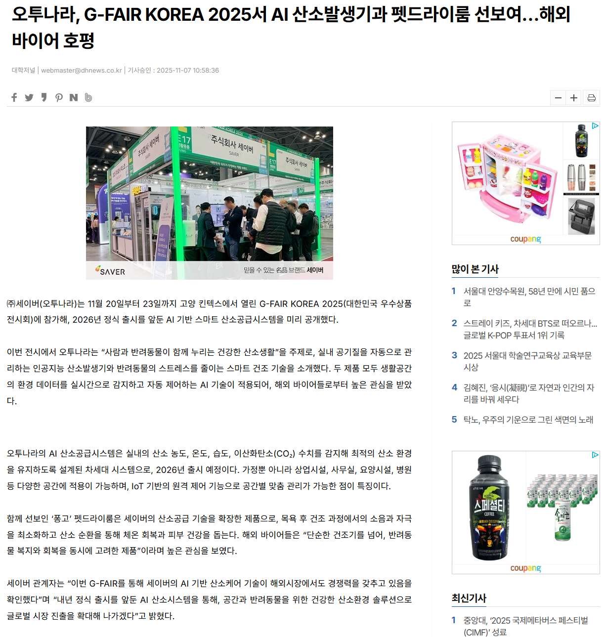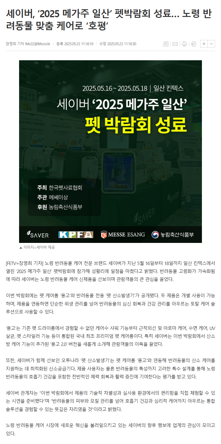 해외 전시 성과 이어간 세이버,국내 ‘KES 2025’서 AI 산소공급·펫 케어 기술 공개