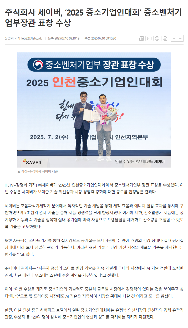 세이버는 앞으로도 AI와 산소 기술을 결합한 스마트 공기·생활 솔루션 기업으로서