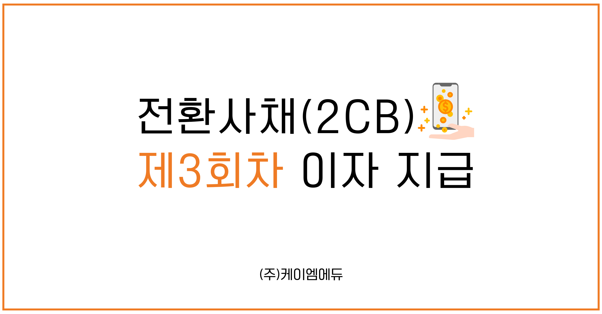 케이엠에듀 1차 펀딩프로젝트 전환사채(2CB) 제3회차 이자를 2025년 4월 15일 지급하였습니다.