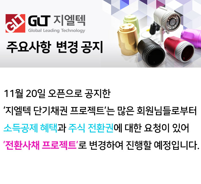 공지사항 지엘텍 프로젝트 주요사항 변경 공지