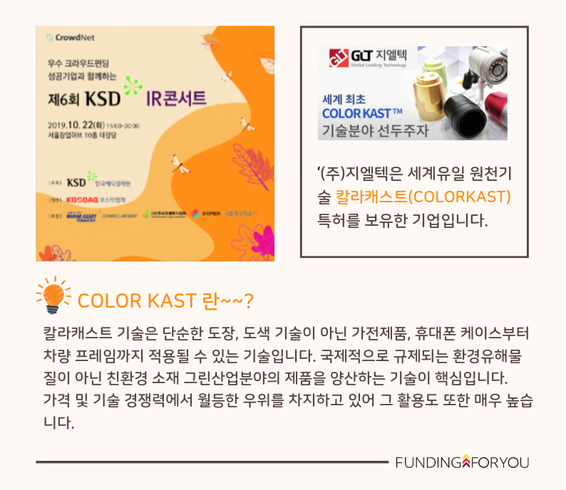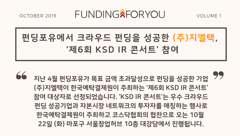 펀딩리포트펀딩포유의 크라우드 펀딩 성공기업 (주)지엘텍, '제 6회 KSD IR 콘서트' 참여
