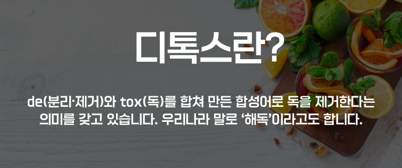 그렇다면 디톡스가 대체 뭘까요? 그 의미와 효능에 대해서 알아보도록 하겠습니다:-)