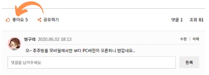다음에는 여러분들과 좋은 댓글(응원의 글)을 공유하고자 해요~