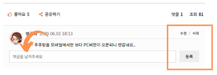 ! 잘못 썼을때는 '수정' 이나 '삭제'버튼을 눌러 고치시면 됩니다.