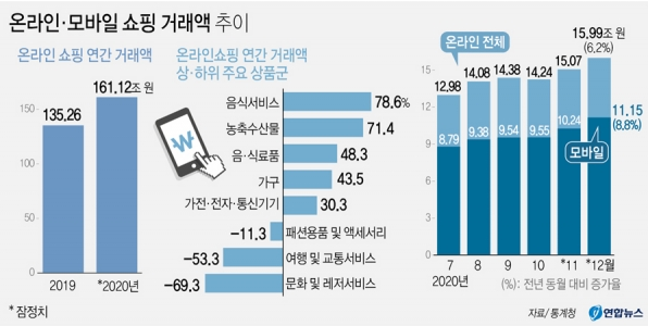 PG사 이용률이 매년 증가하는 이유는 모바일 쇼핑 거래액을 보면 알 수 있는데요. 통계청에 따르면 신종 코로나바이러스 감염증(코로나19) 여파로 비대면 거래가 폭증하면서 지난해 온라인·모바일쇼핑 거래액이 사상 최대치인 161조원을 기록했다고 합니다. 그 중에서도 특히 배달음식 주문 등을 포함한 음식서비스 거래액은 80% 가까이 늘며 가장 큰 폭으로 증가했다고 합니다.