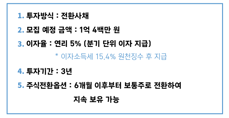 특히 큐브밸리처럼 성장 가능성이 큰 기업의 전환사채 투자 상품은 보통주 전환권이 있다는 점에서 매우 매력적이라고 할 수 있습니다.