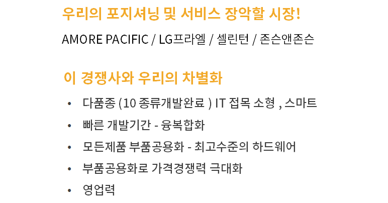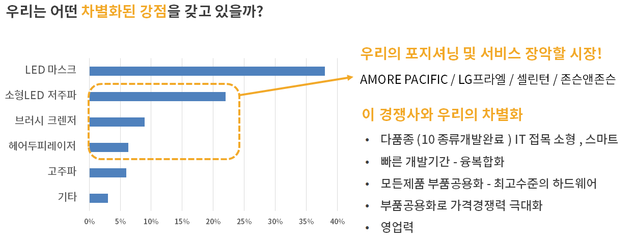 또한 프라터의 주력 분야인 뷰티/반려동물 디바이스 및 헬스케어 시장은 가장 빠른 성장률을 보일 것으로 예상되는 분야로, LG 등 국내 기업에서도 이 분야에 집중적으로 투자하고 있습니다. 어느 나라보다 우리나라의 기술력이 우수하여 국내기업의 성공 가능성이 클 것으로 예상됩니다.