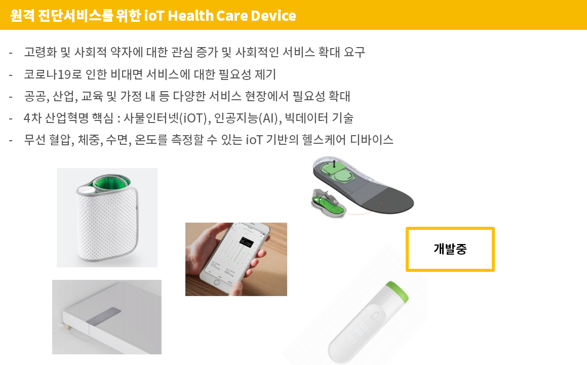 특히 뷰티/헬스케어는 현재 사물인터넷을 가장 활발하게 이용하고 있는 분야로서, 이 둘의 만남은 대표적인 ICT 융합산업이라고 할 수 있으며 건강관리부터 원격진료에 이르기까지 잠재적인 성장 가능성이 매우 높은 분야로 손꼽히고 있습니다. 프라터가 보유하고 있는 센서기술과 웨어러블 및 모바일 단말 등을 기반으로 한 IOT 기술은 헬스케어 산업의 당면과제를 해결하고 새로운 부가가치를 창출할 수 있습니다.