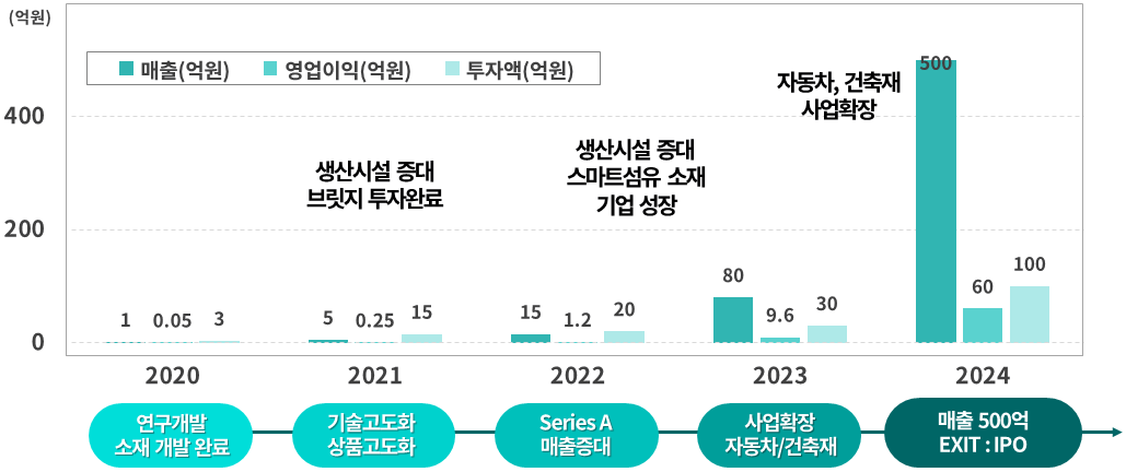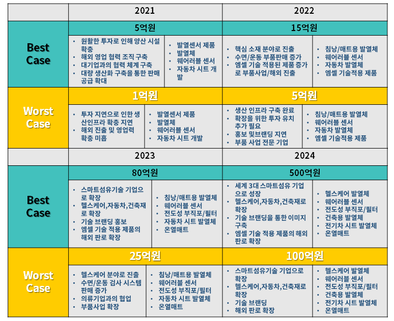 엠셀은 발열 섬유 개발에 집중하고 있지만, 앞으로는 발열체부터 센서 및 최종적으로로 배터리까지 발열 계통의 총제적 기술력을 갖춘 기업으로 성장해 나갈 계획이며, 발열 섬유를 활용한 안전하고 획기적인 제품을 세상에 선보이는 것을 핵심 목표로 하고 있습니다.