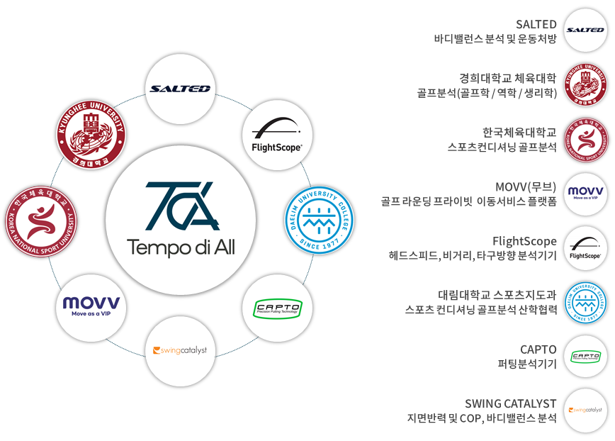 템포디올은 검색을 통해 얻게 되는 ‘명제적 지식’과 그 기술을 실제로 수행할 수 있어야 알 수 있는 ‘경험적 지식’을 하나로 통합하여 프로의 수준으로 업그레이드 해드립니다. 이를 위해 프로골퍼/트레이너/스윙분석가와 함께 선수들의 스윙/피지컬 데이터를 분석하고 개인별 맞춤형 솔루션을 제공합니다. 데이터 분석은 스윙 오류를 즉시 도출하며, 선수의 메커니즘 또는 피지컬 테스트를 통해 개선 방안을 제시하고 실행할 수 있도록 합니다. 축적된 DB는 선수의 경기력 향상을 위한 최상의 컨디션 상태를 모니터링 할 수 있으며, 체력관리·부상예방·재활에 이르기까지 Total Care 프로그램으로 활용됩니다.