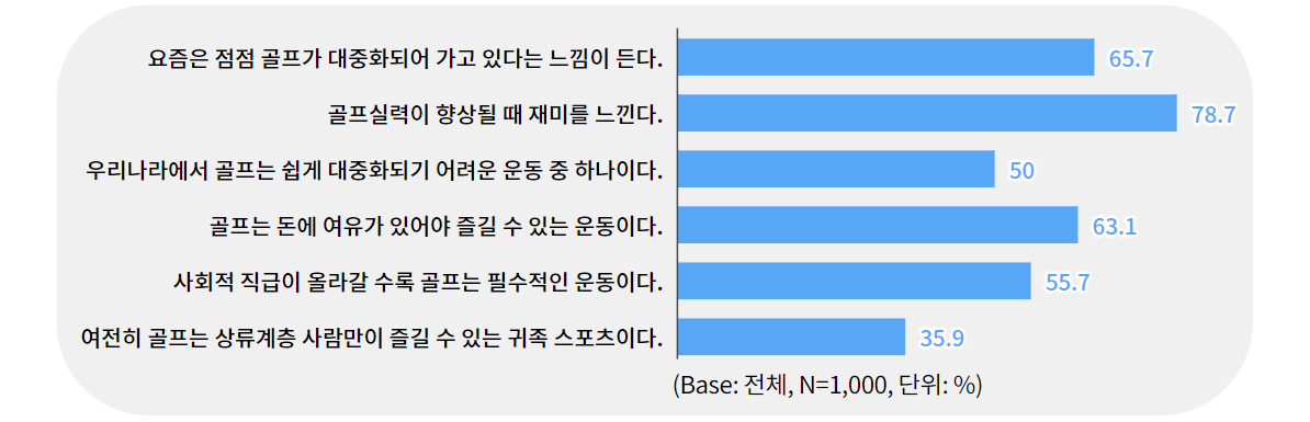 최근 골프연습장의 활성화와 접근성이 좋은 스크린골프장의 증가로 2039세대의 골프진입장벽이 낮이지면서 40대 이상의 중장년층의 스포츠로 여겨졌던 골프이용층이 확대되는 모습을 보이고 있습니다.
