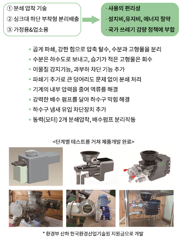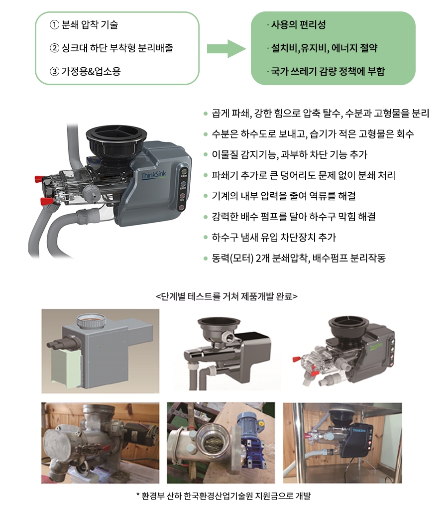 분쇄 압착 기술을 활용한 음식물처리기 'ThinkSink' 제조 기업