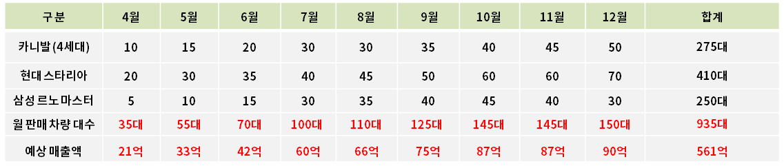 또한 테마 파크 공간 내에서 캠핑카를 체험하고 즐길 수 있는 카페형 전시장 코너를 마련하여 고객에게 편안한 휴식과 더불어 간단한 식・음료와 베이커리를 직접 만들어 제공하는 토탈 카페형 전시장을 운영할 계획입니다.