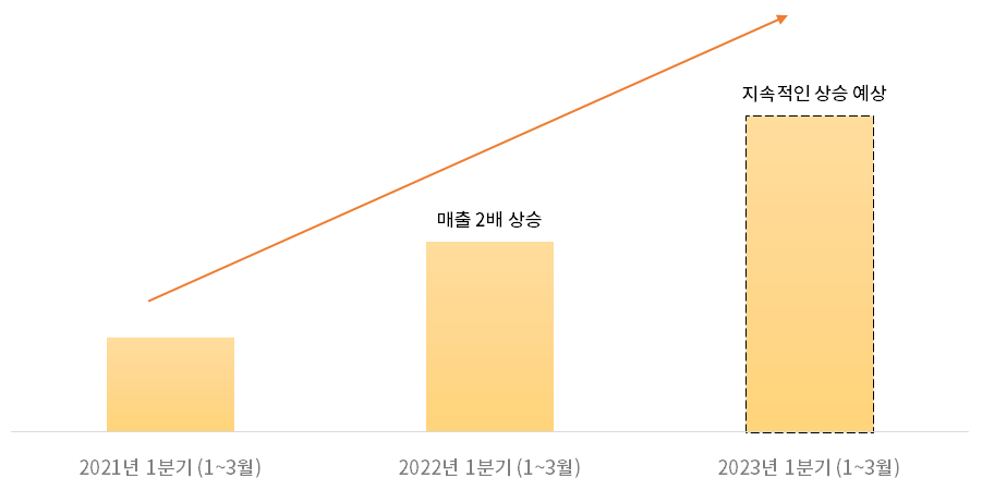 - 2022년 1분기 매출이 2021년 1분기 매출 대비 약 2배 이상 성장