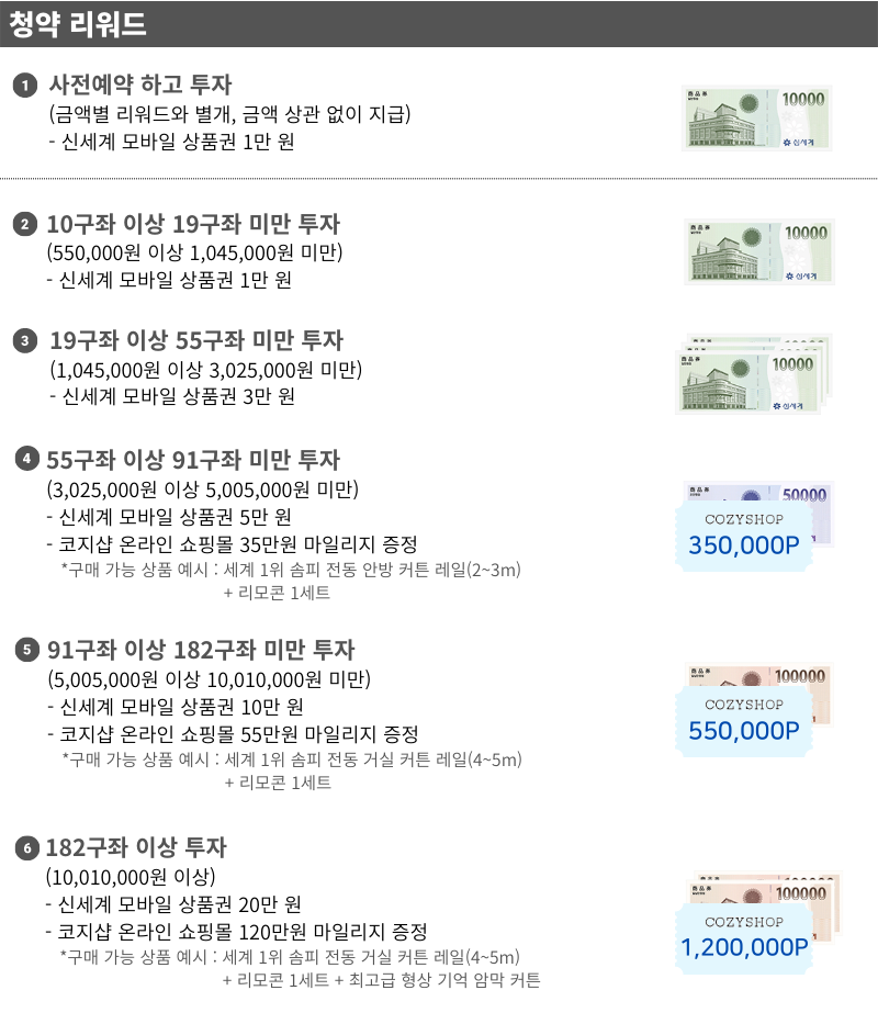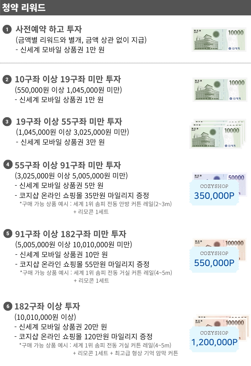 | 1구좌당 금액 | 55,000원 | 투자가능 최소수량 | 2구좌 |