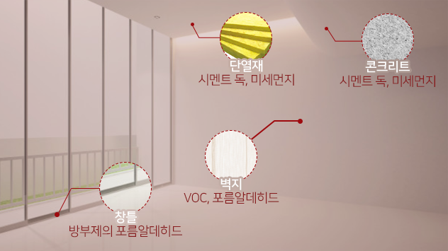 집 자체에서 뿜어져 나오는 유해물질은 아토피 등 각종 질병의 원인이 됩니다.