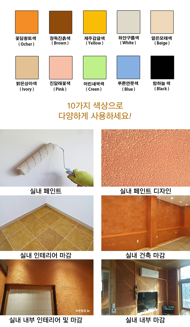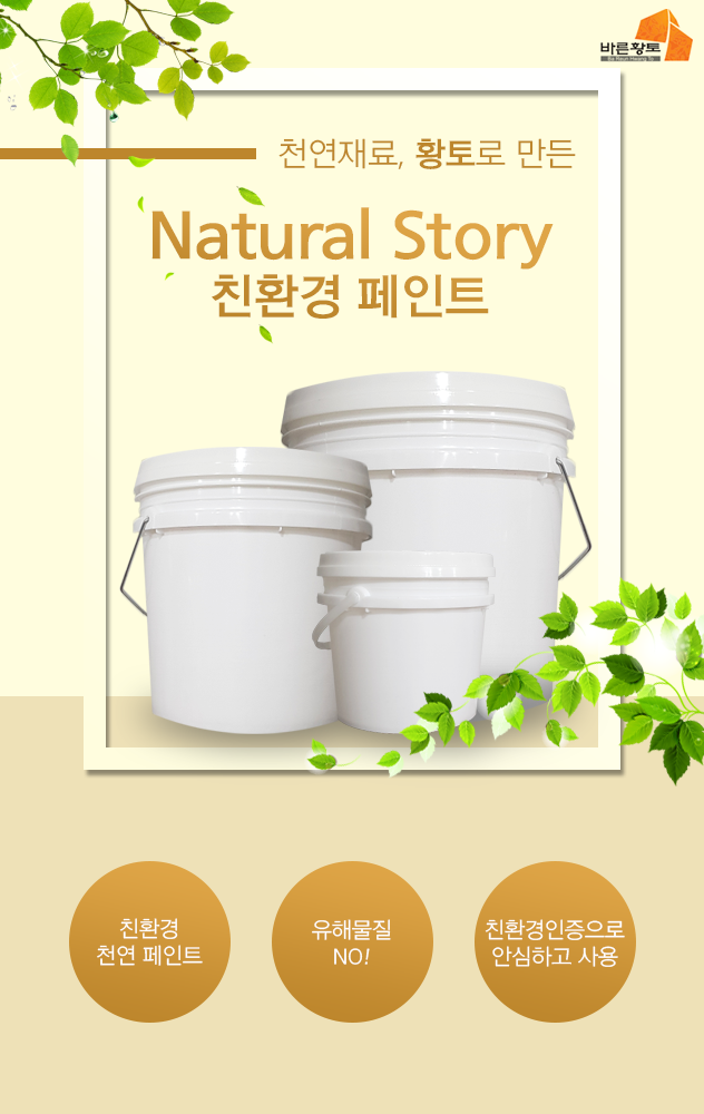 이번에 진행하는 저희 바른황토의 내추럴스토리 페인트도 그 중 하나입니다. 친환경 페인트가 아닌 천연 황토 페인트로서, 황토가 여러분의 생활에 한걸음 더 다가가기를 소망합니다.