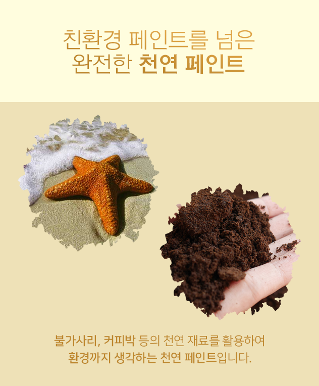 불가사리, 커피 찌꺼기 등의 천연 재료를 사용하여 환경까지 생각한 페인트죠.