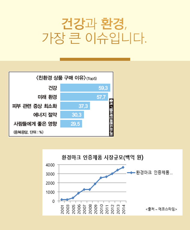 특히, 최근엔 친환경 상품 구매 및 환경마크 인증제품 시장규모가 날로 늘어가고 있습니다.