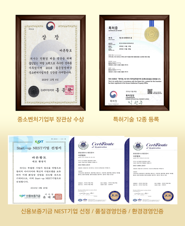 12건의 특허기술과 환경경영/품질경영 인증, 중소벤처기업부 장관상 수상 등으로 믿고 사용할 수 있습니다.