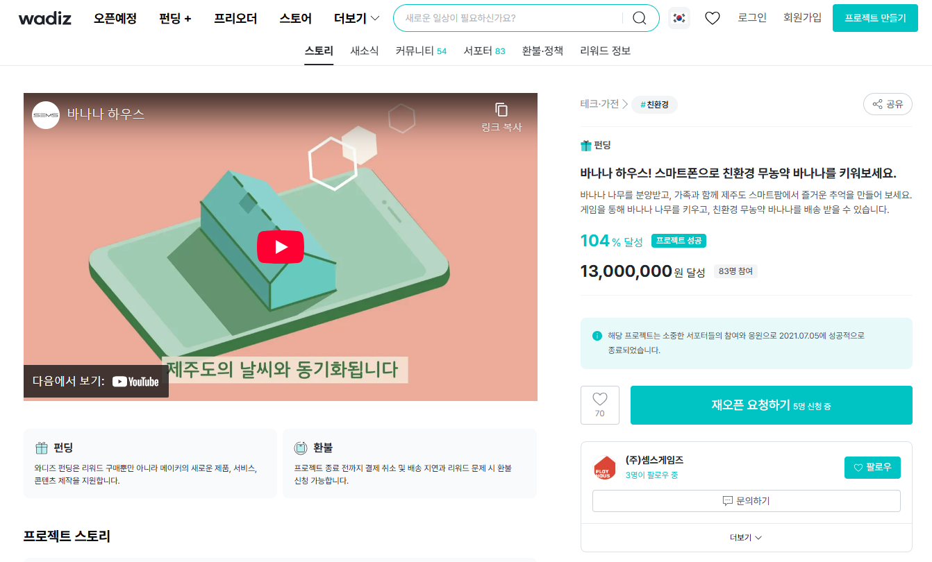 * 게임을 통해 실제 바나나 농장(제주 김녕소재) 연동(2021년)