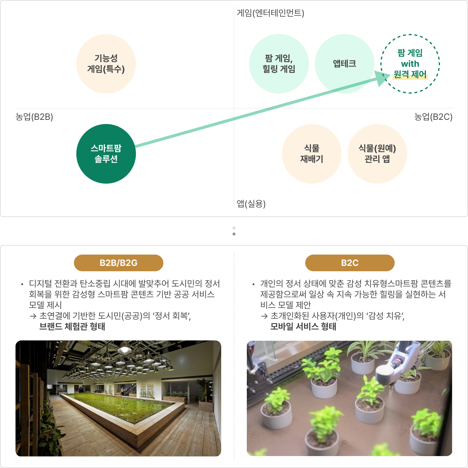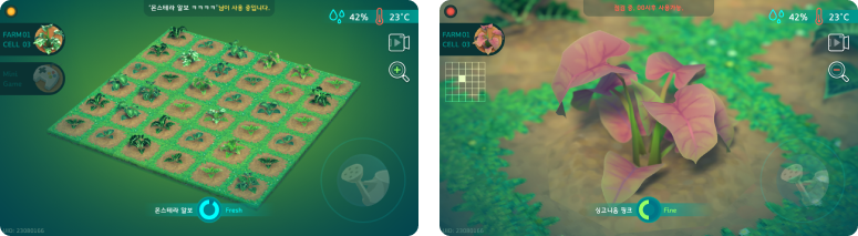기존 전문농업인에게 국한된 실용목적의 ‘스마트팜 솔루션’을 일반인에게 ‘게임’이나 ‘엔터테인먼트 요소(콘텐츠 등)’로 제공