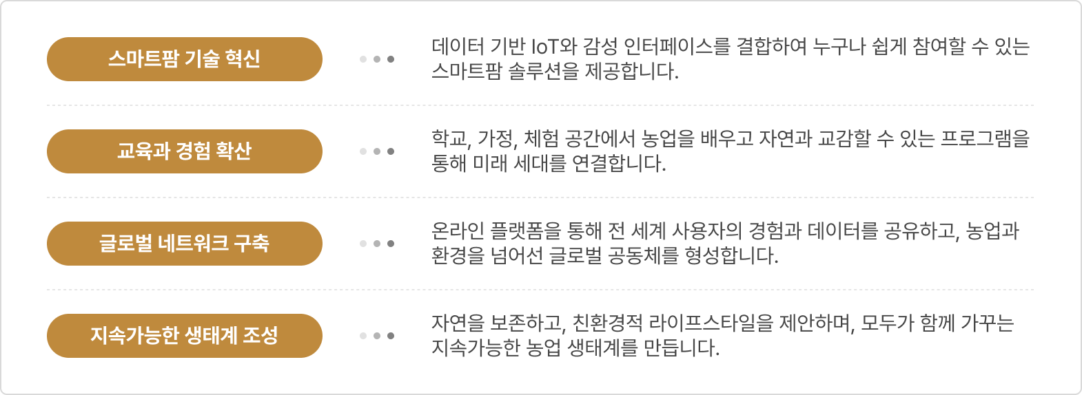 - 데이터 기반 IoT와 감성 인터페이스가 결합된 스마트팜 솔루션