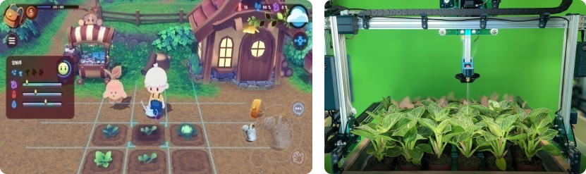 이를 통해 게임서비스와 팜데스크를 연동하여 온라인에서 실제 식물을 키울 수 있는 차별화된 경험을 사용자에게 제공하는 것이 목표입니다.