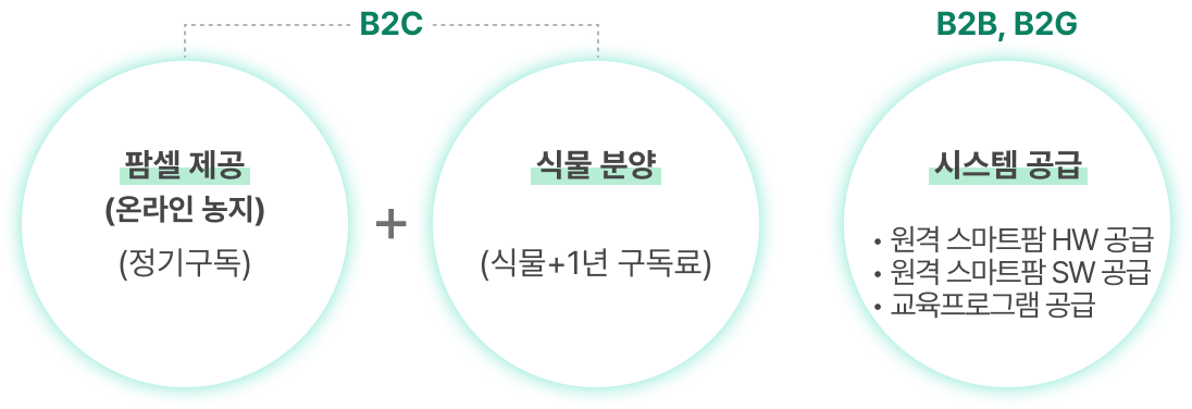 ❷ B2B/B2G 대상의 스마트팜 시스템 매출은 원격 스마트팜 HW 및 SW 공급, 교육프로그램 공급으로 구성되어 있습니다. HW의 경우, 1식 기준 공급가(1천만원/식)가 책정되며 설치 공간이나 요구 사항에 따른 맞춤형 시스템 설치가 가능합니다(SW는 HW 공급 시 무상 제공+대시보드 및 AI 기능 등 맞춤형 시스템 가능). 교육프로그램은 총 20회 교육(HW 및 SW 운영) 기준으로 공급가를 책정하고 있습니다.