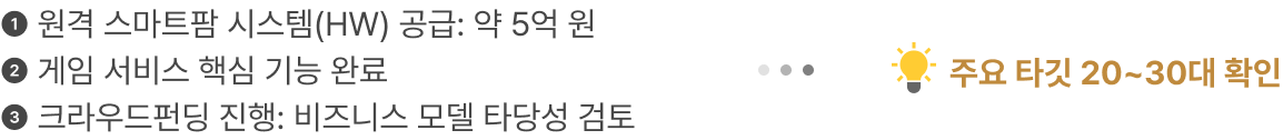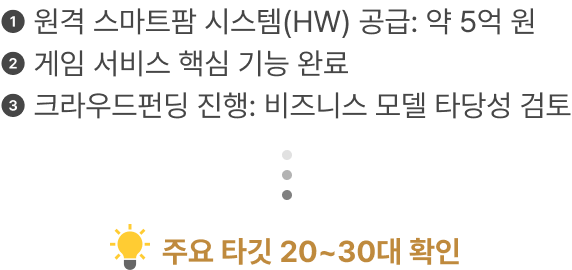 ❸ 최근 3년간 준비한 원격 스마트팜과 게임 서비스를 통해 현재 지속가능한 사업화의 기반을 마련
