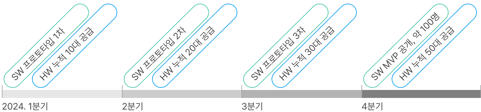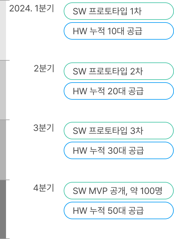 원격스마트팜 시스템(SW, HW)은 현재 베타서비스가 가능한 수준으로 개발되어 1천명 사용자에 대한 안정적인 운영이 가능하며, 스마트팜 관련 파종·급수·센싱·자동화 등 필수 ‘제어’ 기능 구현이 가능한 상태입니다(현재 매출 발생 중). SW의 경우 현재 R&D 단계에 있는 AI 기반 맞춤형 가이드를 고도화하여 2만명 사용자 안정성을 제공할 계획이며, HW에서는 기존 원격스마트팜에서의 도킹 스테이션 방식을 스탠드얼론 유닛(사용자 제공형 소형 IoT 화분) 방식으로 고도화할 예정입니다. 또한 온라인 식물 키우기 게임서비스는 2024년 하반기 알파테스트(100명 대상)를 완료하고 2025년 하반기에 1,000명 사용자 대상의 베타서비스를 진행할 예정으로 베타서비스 진행 후 정식 출시가 되면 2026년부터 본격적인 매출 실현이 가능할 것으로 예상됩니다.