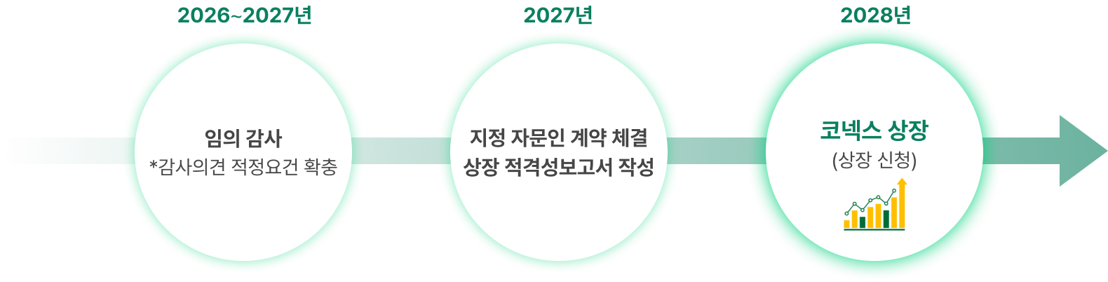 ❹ 2026년 정식 서비스를 통해 매출을 신장하고 본격적으로 코넥스상장을 추진할 계획임