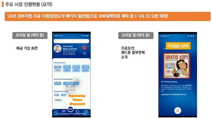 2. 금번에 정부지원 사업(창업도약 패키지)에 합격하여 정부지원금을 받게 되었습니다. 올해 목표로 한 모바일웹(임직원)을 조기에 오픈할 계획으로 사업을 진행하겠습니다.