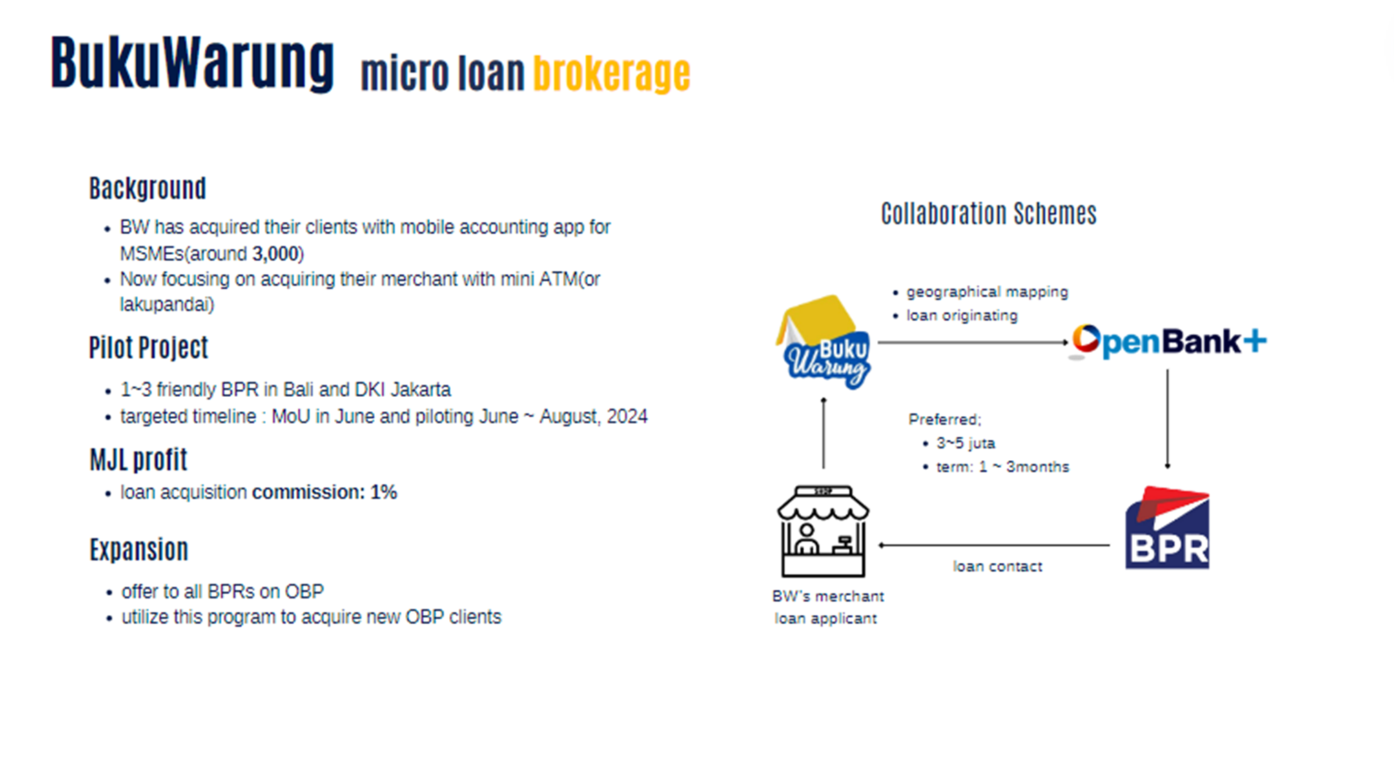 4) 세무회계시스템(Buku Warung)에서 임직원 가불 원할때 지방은행 소액 단기 대출 중계