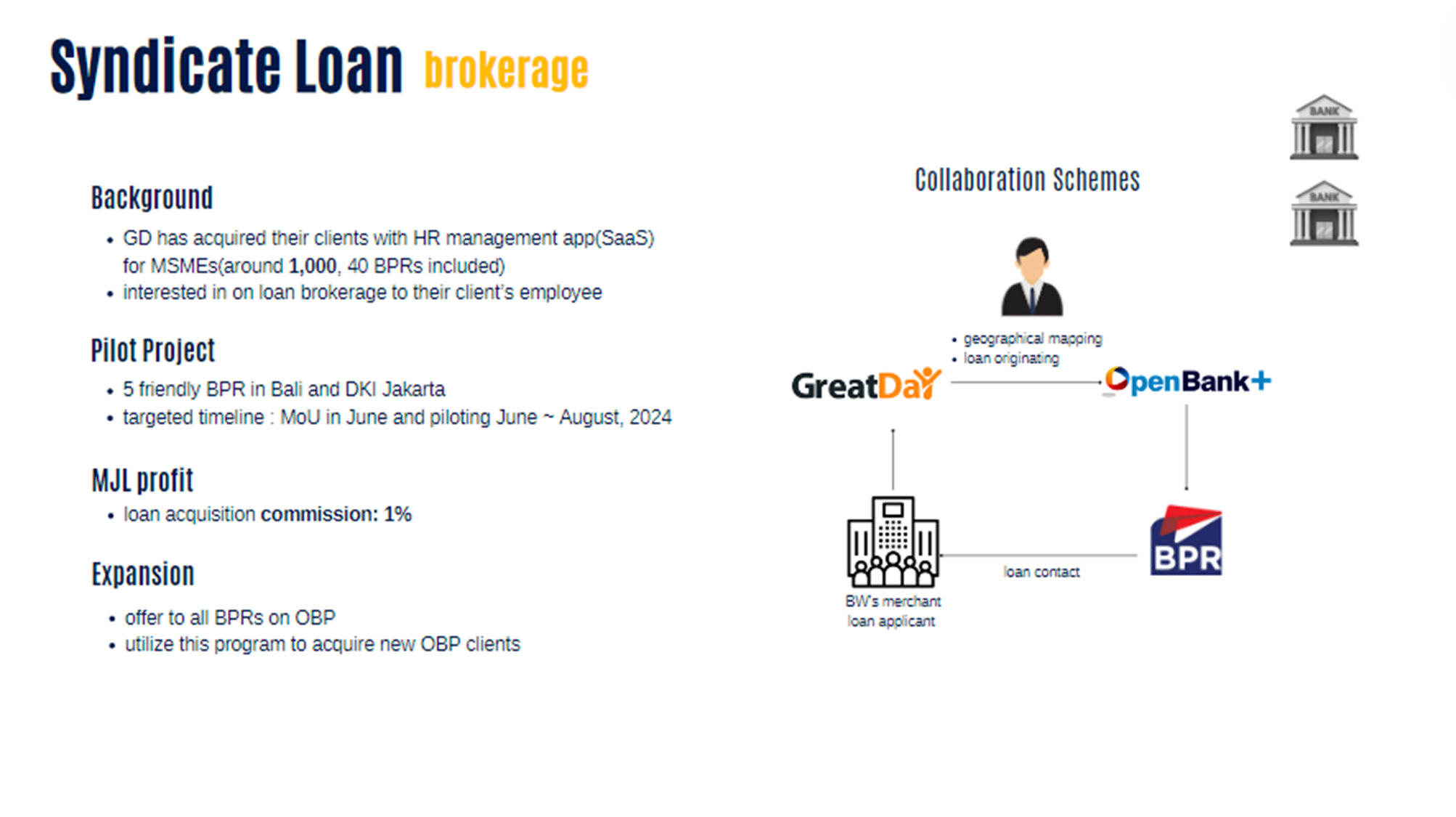 1) 큰 규모의 대출을 여러 지방은행들이 함께 나눠서 처리하는 사업