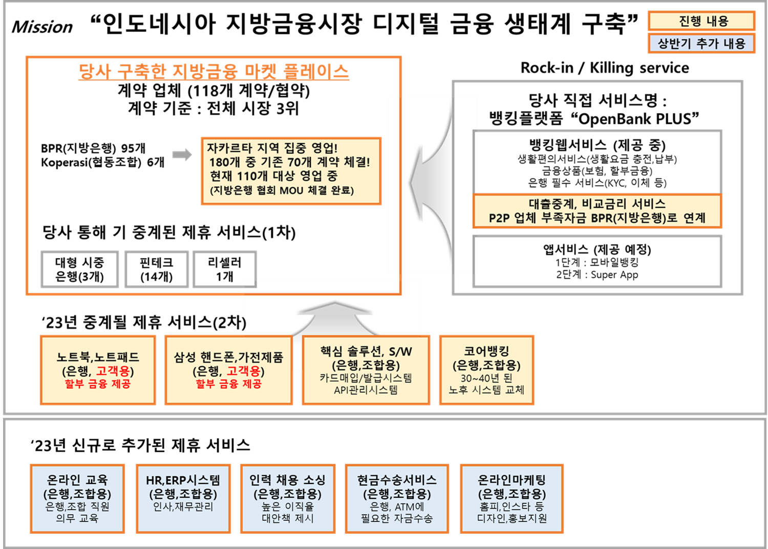 당사 OpenBank PLUS에 ‘23년말부터 개발 및 연동시켜 ‘24년부터 본격적으로 판매, 영업 진행할 계획입니다.