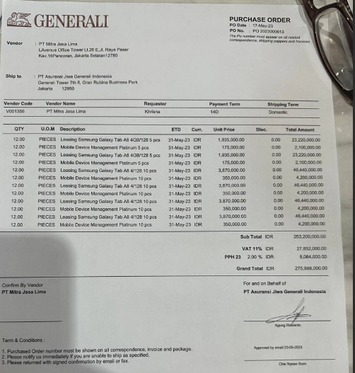 5월 23일 Generali 보험사에 2.8억 루피아 규모 제품 제공하여 첫 매출