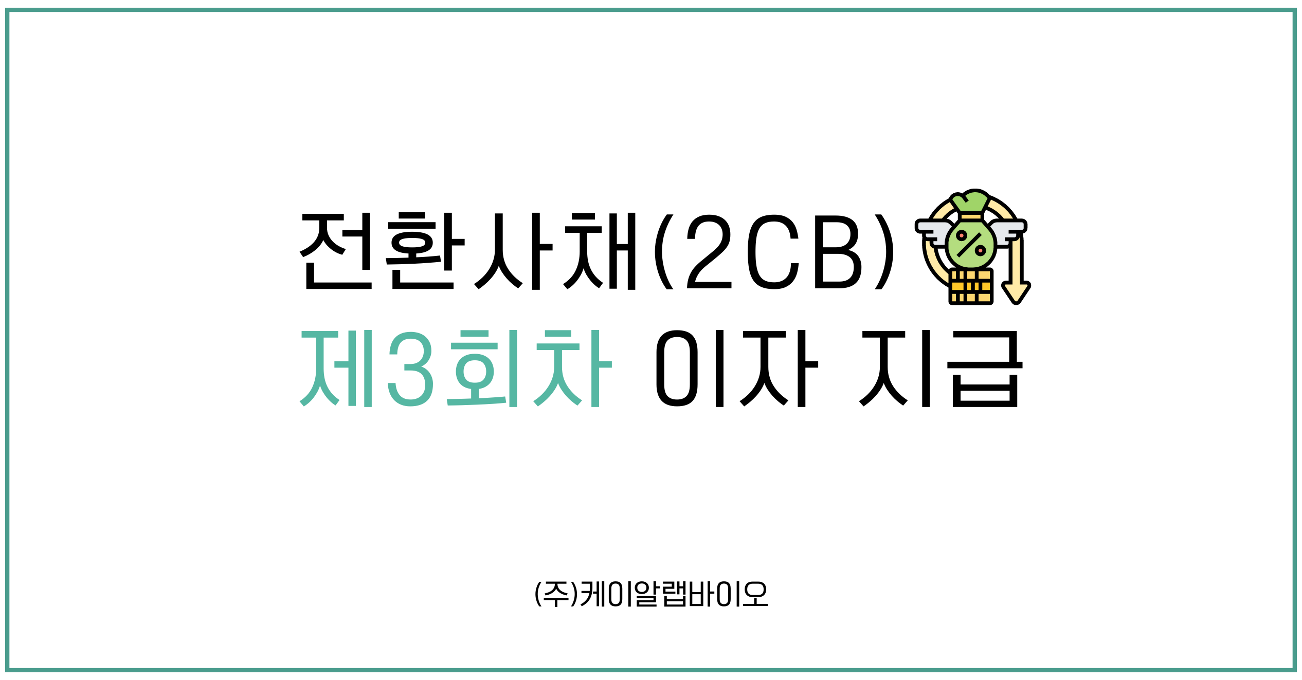 케이알랩바이오 1차 펀딩 전환사채(2CB) 제3회차 이자를 2024년 06월 27일 지급하였습니다.
