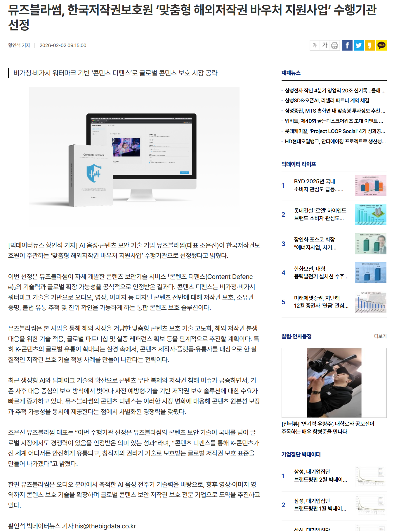 뮤즈블라썸이 2026년 1월, 한국저작권보호원의 「맞춤형 해외 저작권 바우처 지원사업」 수행기관으로 선정되었습니다.