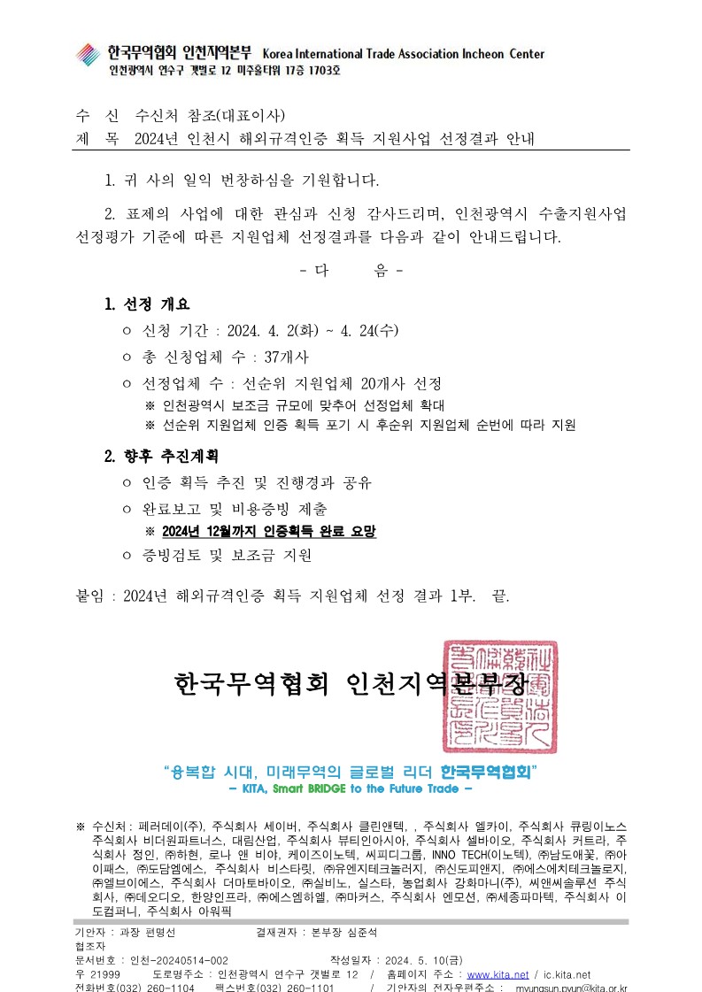 지난 5월 14일 한국무역협회에서 주관하는 2024년 인천시 해외규격인증 획득 지원사업에 선정되어 세이버 “숲속IN“ 산소발생시스템 신제품 및 IoT 모듈화 사업에 사용될 WIFI 모듈에 대해 CE, CB, KC 인증을 진행하게 되었습니다.