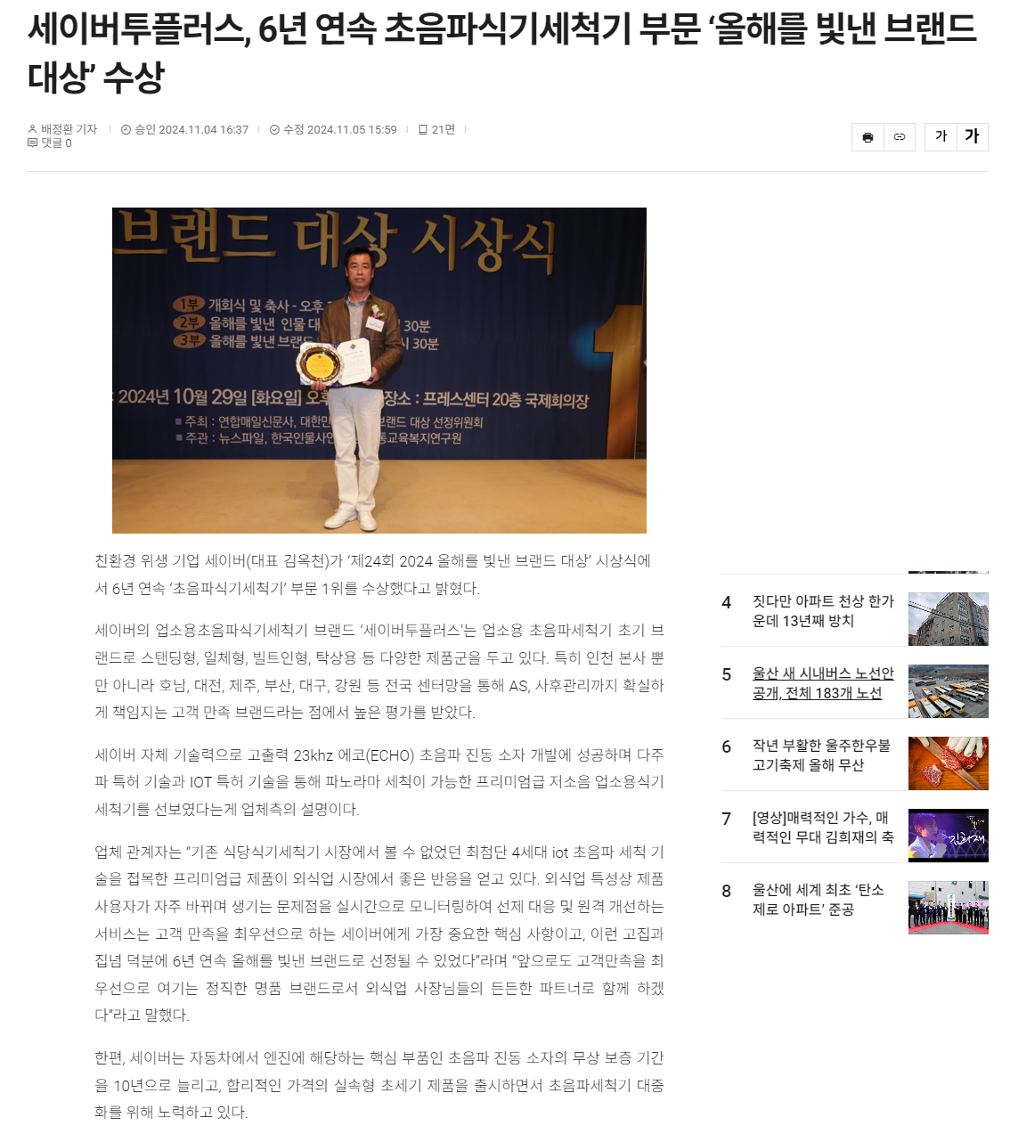 세이버 올해를 빛낸 브랜드 대상 수상