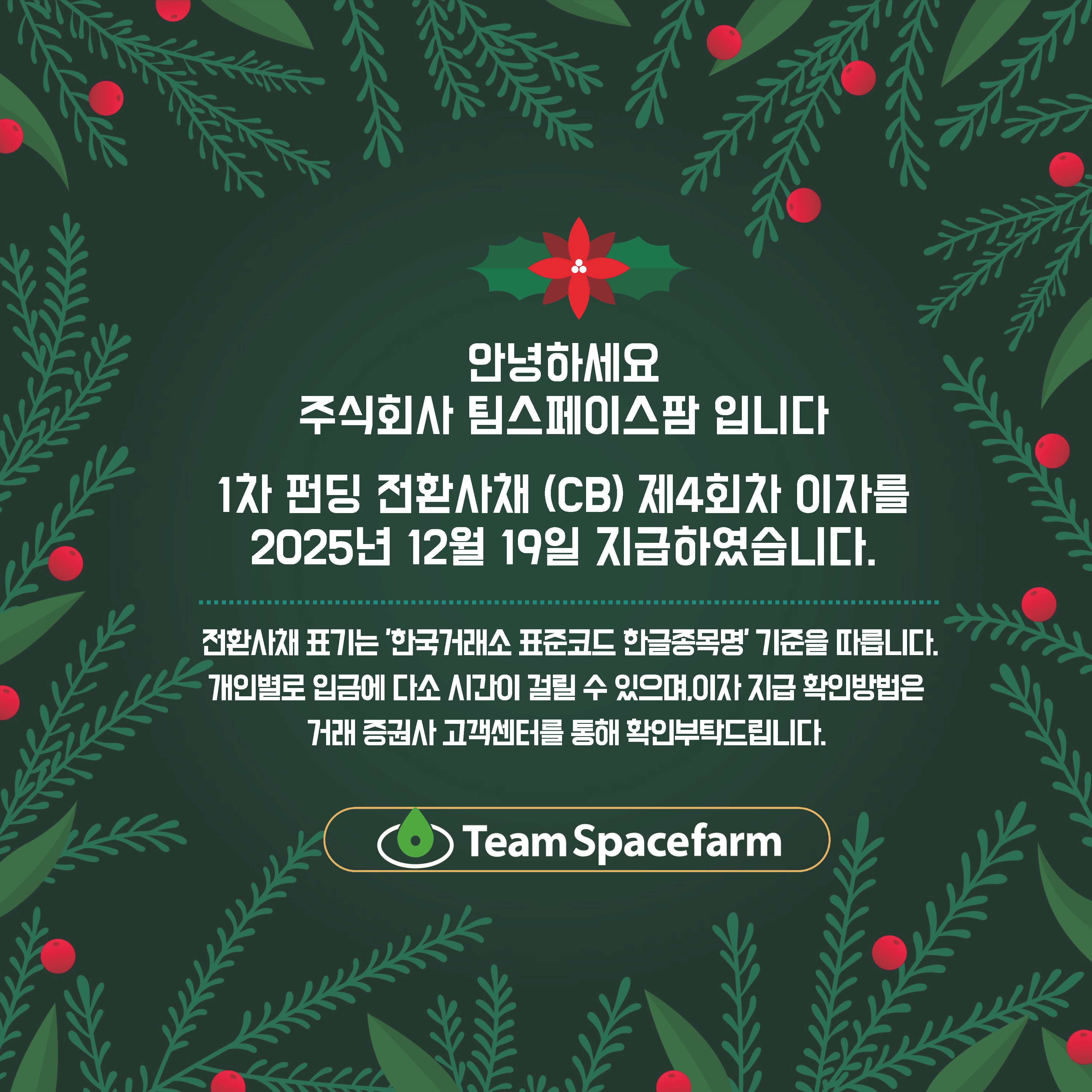 제4회차 이자를 2025년 12월 19일 지급하였습니다.